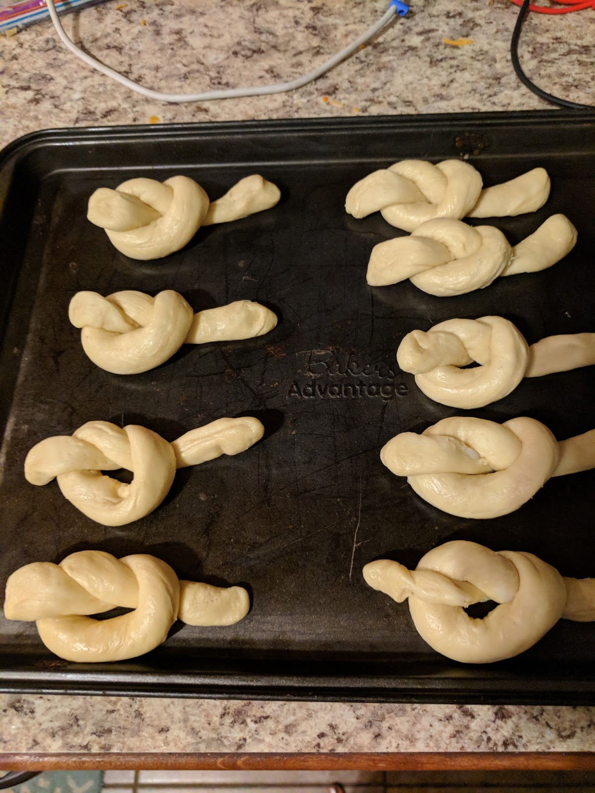 - Place each knot onto a baking sheet.